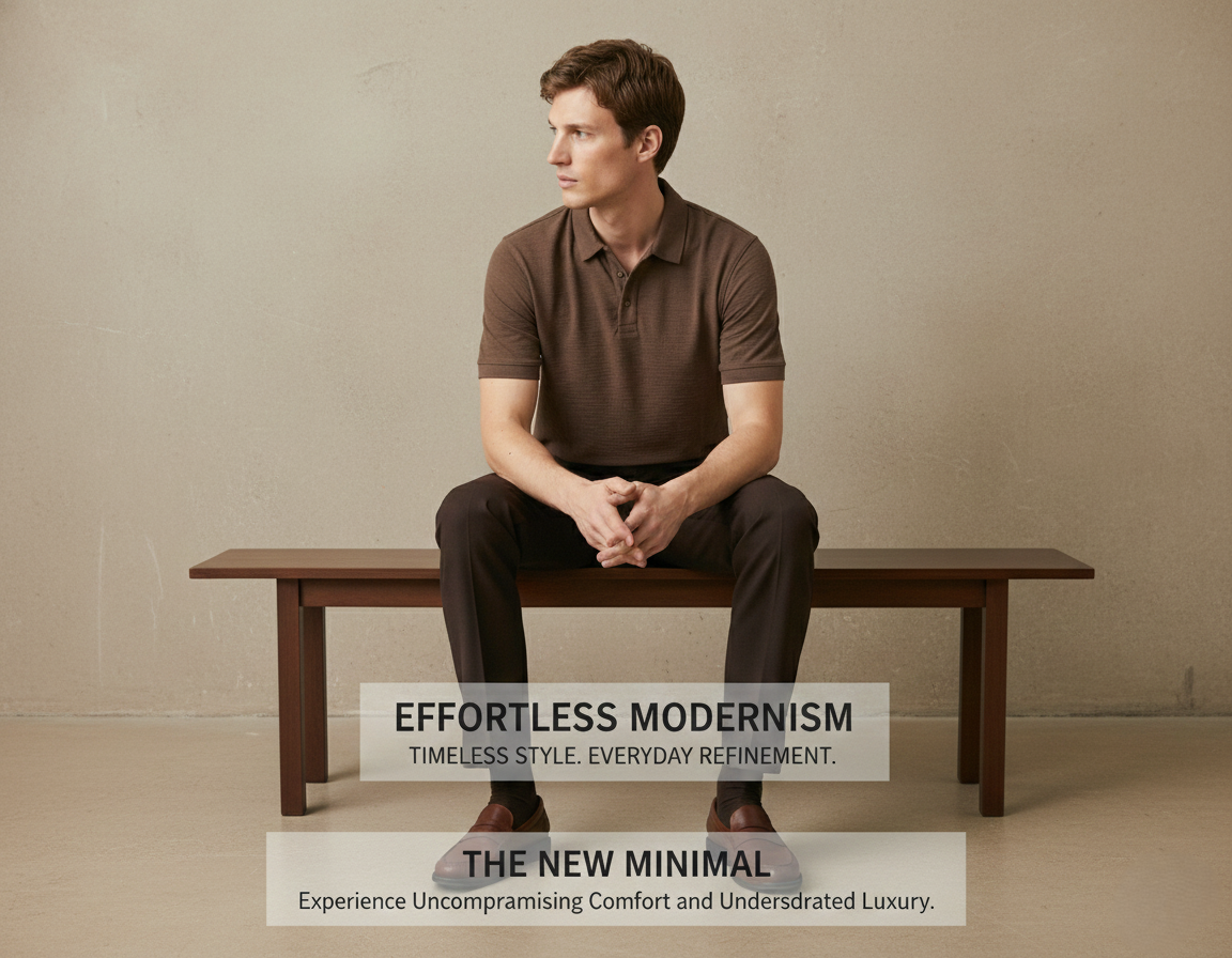 Brown Textured Polo Shirt for Men - Smart Casual Office Ready
